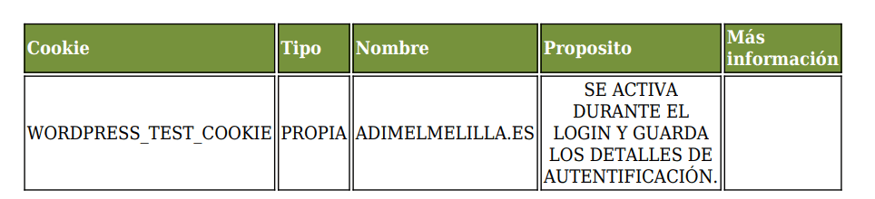Nota: Las cookies de tipo “Propias” son utilizadas sólo por el propietario de esta web y las
